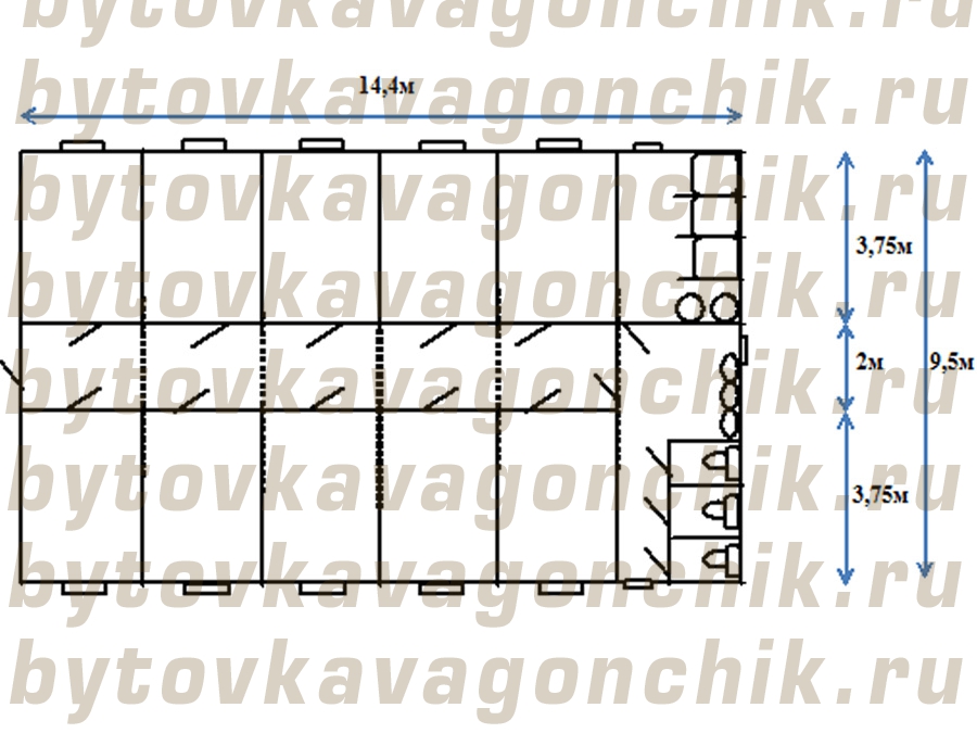 3.Блок -контейнер  БК 9,5*2,4*2,5 -1шт.    (сан. блок)